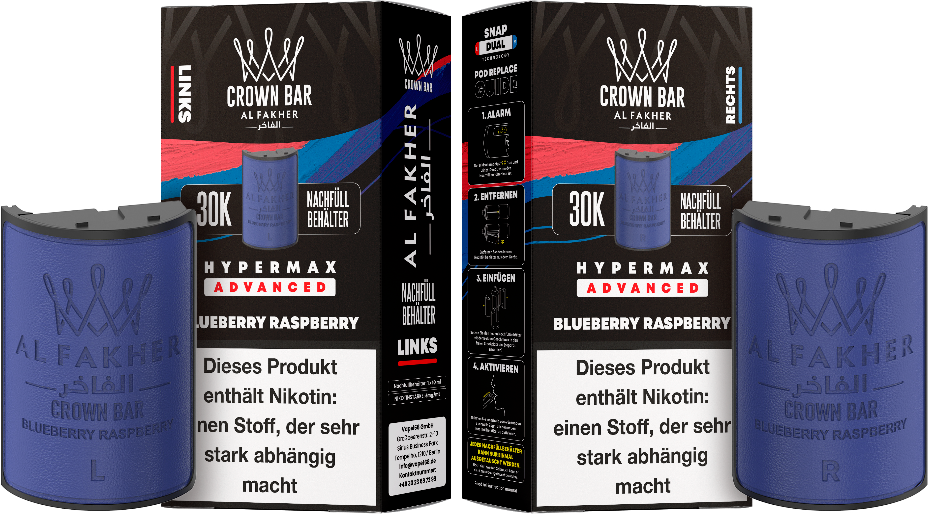 Produktinformationen "Al Fakher - Hypermax 30k 2ml Gerät + 2x10ml Pod - Blueberry Raspberry"